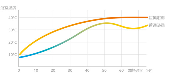 普通浴霸在升溫過程中易出現上下浮動,以致在洗浴過程中人們會感到忽冷忽熱, 一定程度上大大降低了沐浴體驗性。巨奧高制熱量系統設計,升溫勻速,把控溫度。